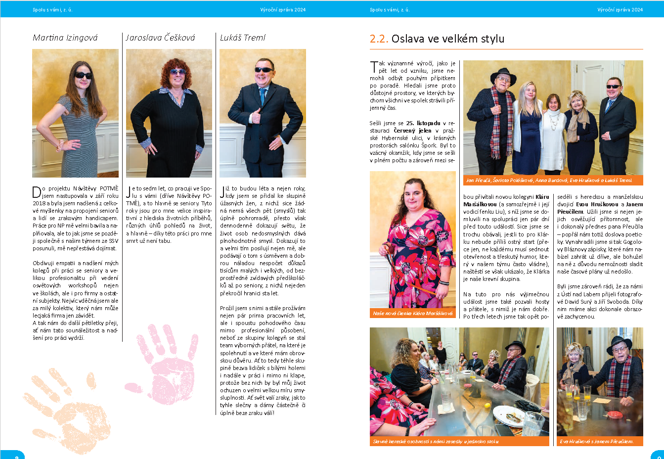 Sousloví „výroční zpráva“ má většina lidí spojené s nudným, úředním dokumentem, kterým organizace vykazují svou činnost. My však „výročku“ bereme jako vzpomínkovou mapu, kterou jednou budeme rádi listovat. A samozřejmě i jako dokument, jímž přibližujeme příznivcům aktivity našeho sociálního podniku.